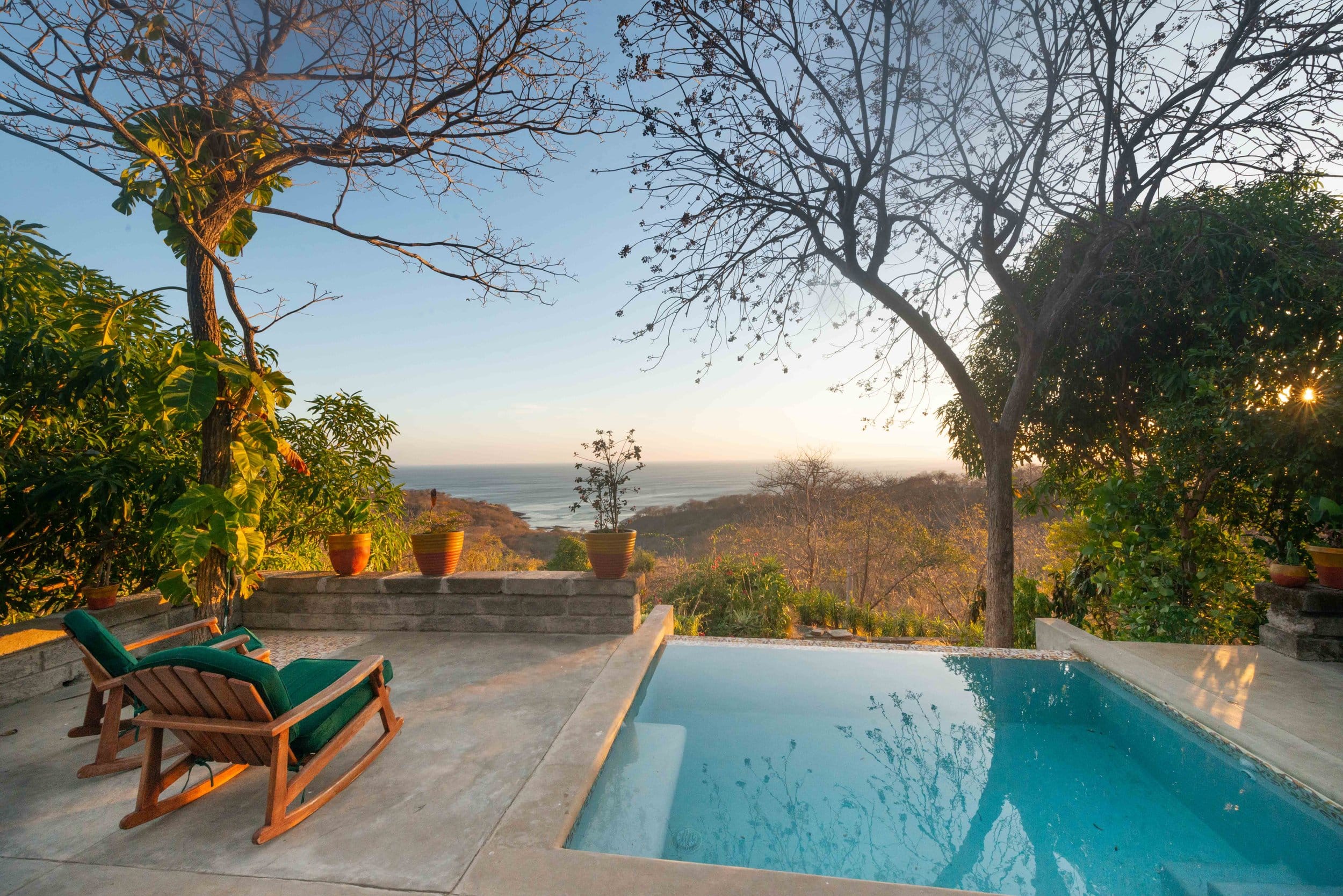 - Private pools, tropical gardens, wide decks for sunsets