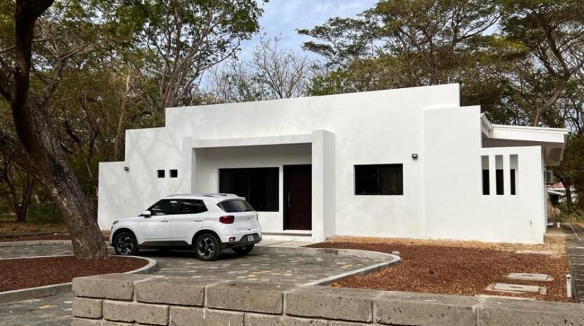 Casa Blanca, located in the exclusive Bosques del Mar residential area, is an excellent investment opportunity in a property that combines contemporary design, family comfort, security, and proximity to nature. Fully furnished and on one level, this home offers four spacious bedrooms and two and a half bathrooms, ideal for both living and generating income through vacation or long-term rentals.Key Features:Spacious and Functional Design:The home features a wide entrance, parking for up to three vehicles, and a welcoming covered porch that leads to a bright living room.Open Kitchen with Natural Light:Enjoy a modern kitchen with custom wood cabinetry, a breakfast bar, and generous light sources thanks to its windows and sliding glass doors.Smart Layout:The bedrooms are located at opposite ends of the home for privacy. Each features air conditioning and custom closets. The bathrooms are conveniently arranged for family or guest use.Laundry Area and Additional Space:Includes a half bathroom near the indoor laundry area with pre-installed fixtures, as well as an outdoor storage room for cleaning supplies.Large Patio with Expansion Potential:The large backyard and rooftop offer multiple possibilities: building a pool, BBQ area, or lounge space with a view.Safe and Tranquil Setting:Located in a gated community with 24/7 security and controlled access, Casa Blanca offers a serene lifestyle just a 10-minute drive from downtown San Juan del Sur and a short distance from beautiful Playa Marsella with access to the private owners’ area. It is a perfect option for families, retirees, or investors seeking tranquility without sacrificing urban amenities.Unique Real Estate Opportunity:In a market where it is difficult to find new and affordable properties close to the beach, Casa Blanca in Bosques del Mar represents an exceptional investment. Whether as a permanent home, vacation home, or rental property, this house offers comfort, location, and value in one of the most desirable destinations in Nicaragua’s South Pacific. Air Conditioning, Outdoor Details>Back yard, Utilities>Electricity, Outdoor Details>Garden, Modern Style, Near Beach, Near Hospital, Near Public Transportation, Near Schools, New Building, Parking, Restaurant area, SecurityGated Community, Houses